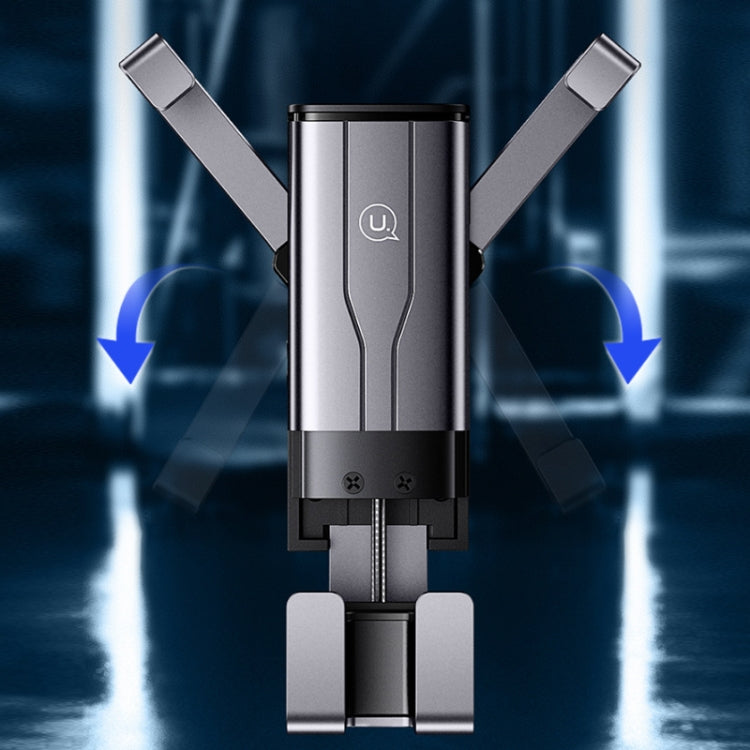 2. Use the gravity of the mobile phone to pull the clamping arms on both sides to rotate and retract, and lock the machine firmly